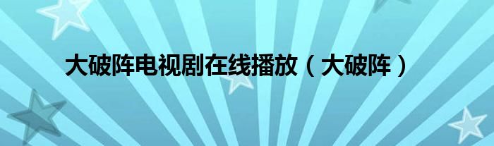 大家好,小问来为大家解答以上问题。大破阵电视剧在线播放,大破阵这个很多人还不知道,现在让我们一起来看看吧!