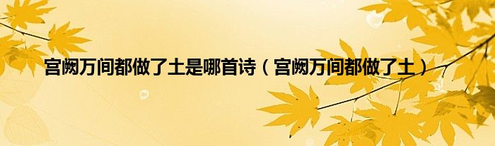 大家好,小问来为大家解答以上问题。宫阙万间都做了土是哪首诗,宫阙万间都做了土这个很多人还不知道,现在让我们一起来看看吧!