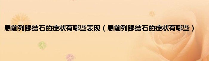 本文,患前列腺结石的症状有哪些表现,患前列腺结石的症状有哪些到此就分享完毕,希望对大家有所帮助。