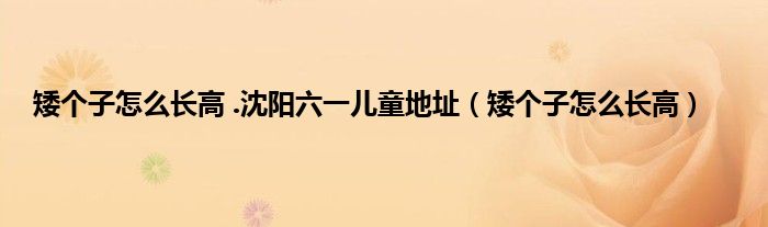 大家好,矮个子怎么长高 .沈阳六一儿童地址,矮个子怎么长高很多人还不知道,现在让我们一起来看看吧!