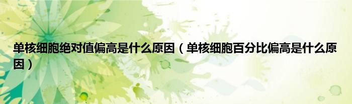 本文,单核细胞绝对值偏高是什么原因,单核细胞百分比偏高是什么原因到此就分享完毕,希望对大家有所帮助。