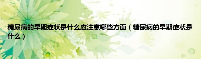 本文,糖尿病的早期症状是什么应注意哪些方面,糖尿病的早期症状是什么到此就分享完毕,希望对大家有所帮助。