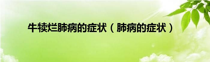 本文,牛犊烂肺病的症状,肺病的症状到此就分享完毕,希望对大家有所帮助。