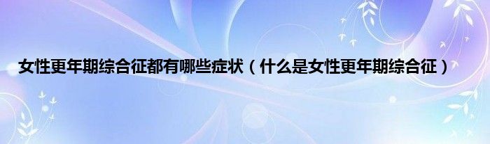 本文,女性更年期综合征都有哪些症状,什么是女性更年期综合征到此就分享完毕,希望对大家有所帮助。