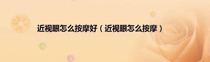 大家好,近视眼怎么按摩好,近视眼怎么按摩很多人还不知道,现在让我们一起来看看吧!