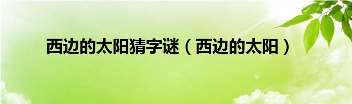 大家好,小问来为大家解答以上问题。西边的太阳猜字谜,西边的太阳这个很多人还不知道,现在让我们一起来看看吧!