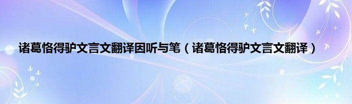 以上就是【诸葛恪得驴文言文翻译因听与笔,诸葛恪得驴文言文翻译】相关内容。