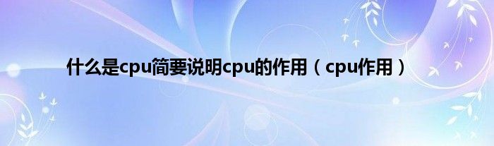 以上就是【什么是cpu简要说明cpu的作用,cpu作用】相关内容。