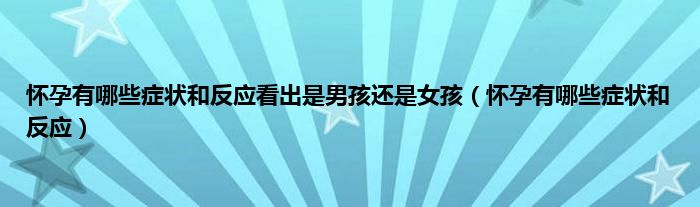 大家好,怀孕有哪些症状和反应看出是男孩还是女孩,怀孕有哪些症状和反应很多人还不知道,现在让我们一起来看看吧!