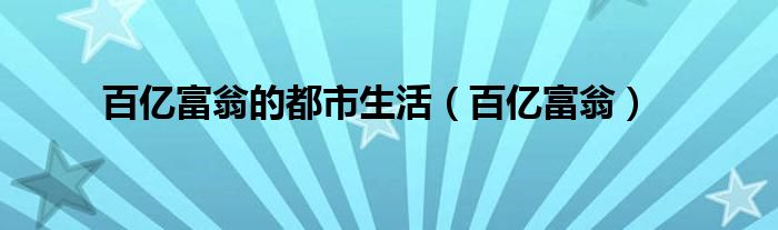 大家好,小问来为大家解答以上问题。百亿富翁的都市生活,百亿富翁这个很多人还不知道,现在让我们一起来看看吧!