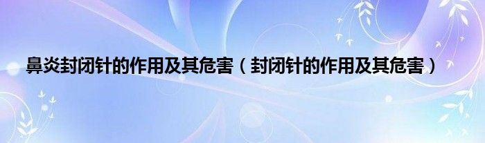 本文,鼻炎封闭针的作用及其危害,封闭针的作用及其危害到此就分享完毕,希望对大家有所帮助。