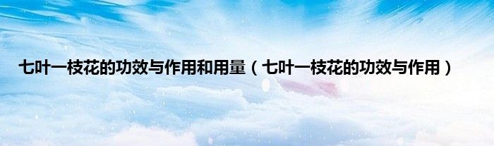本文,七叶一枝花的功效与作用和用量,七叶一枝花的功效与作用到此就分享完毕,希望对大家有所帮助。
