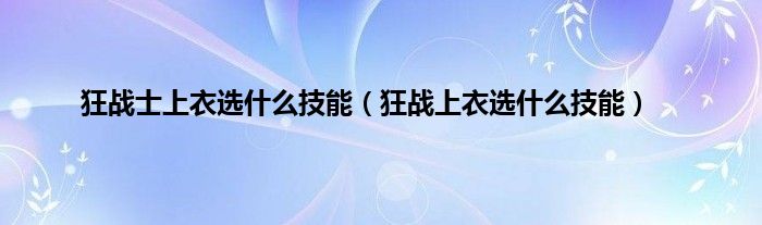 大家好,小问来为大家解答以上问题。狂战士上衣选什么技能,狂战上衣选什么技能这个很多人还不知道,现在让我们一起来看看吧!