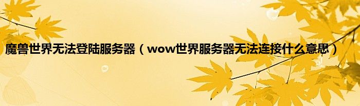 以上就是【魔兽世界无法登陆服务器,wow世界服务器无法连接什么意思】相关内容。