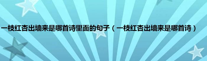 大家好,小问来为大家解答以上问题。一枝红杏出墙来是哪首诗里面的句子,一枝红杏出墙来是哪首诗这个很多人还不知道,现在让我们一起来看看吧!