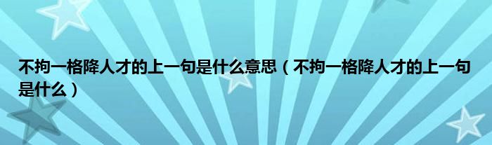 大家好,不拘一格降人才的上一句是什么意思,不拘一格降人才的上一句是什么很多人还不知道,现在让我们一起来看看吧!