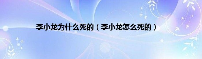本文,李小龙为什么死的,李小龙怎么死的到此就分享完毕,希望对大家有所帮助。