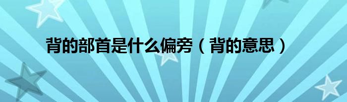 大家好,背的部首是什么偏旁,背的意思很多人还不知道,现在让我们一起来看看吧!