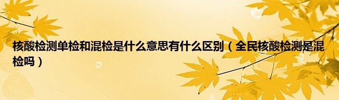 核酸检测单检和混检是什么意思有什么区别(全民核酸检测是混检吗)