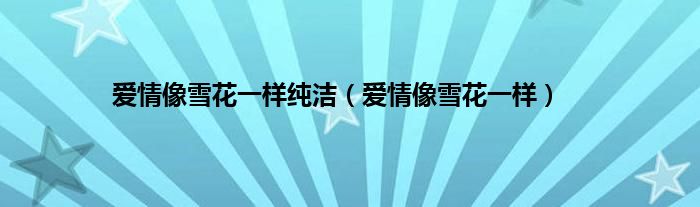 大家好,小问来为大家解答以上问题。爱情像雪花一样纯洁,爱情像雪花一样这个很多人还不知道,现在让我们一起来看看吧!